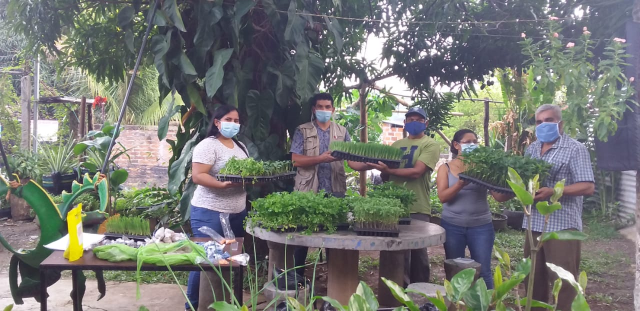 25 familias del barrio la Sierpe en la ciudad de Chalatenango recibieron almácigos y semillas de tomate, chile, apio, cebollín, pepino, fríjol, ejote, cilantro, rábano, fríjol mica, así como insecticida sulfocalcio y abono bocachi. Esto con la finalidad de que las familias puedan contar con un huerto casero que contribuya a mejorar su seguridad alimentaria.
