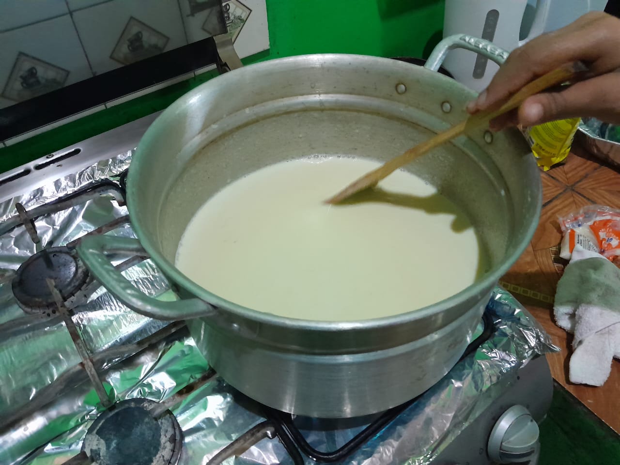 Mujeres que participan en el Programa de Agricultura Sostenible de la Pastoral Campesina y de la Tierra de Cáritas en la Diócesis de San Vicente, realizaron práctica de elaboración de atol de plátano con leche, como parte de su formación que busca diversificar su dieta nutricional y fortalecer su seguridad alimentaria.