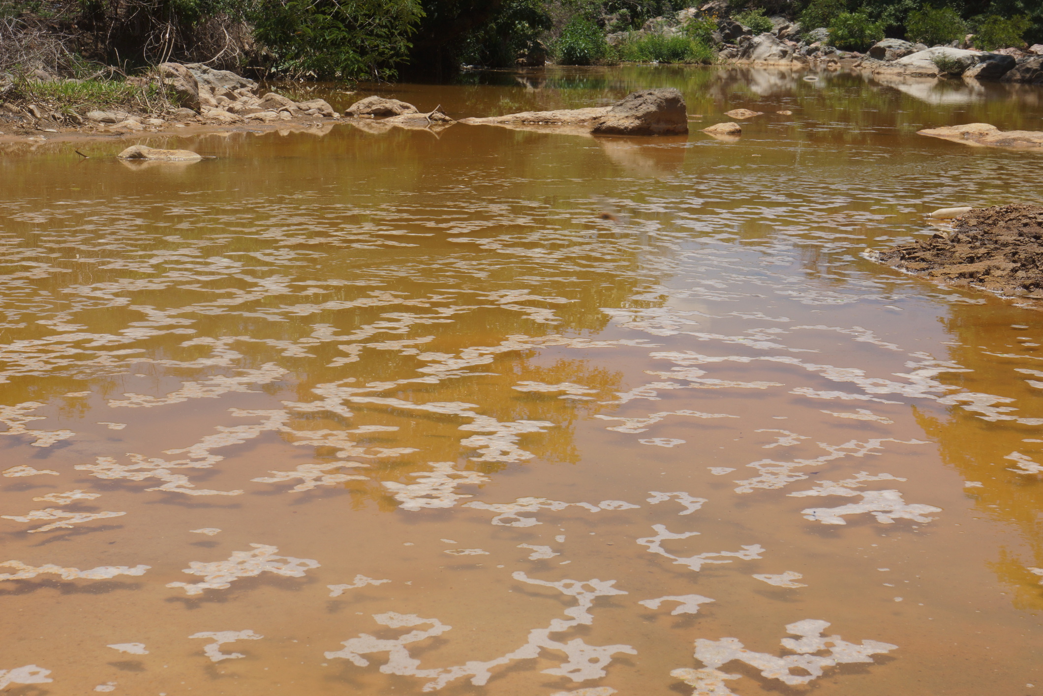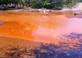 | Río San Sebastián en La Unión, contaminado con drenaje ácido, resultado de la explotación minera en la zona. |