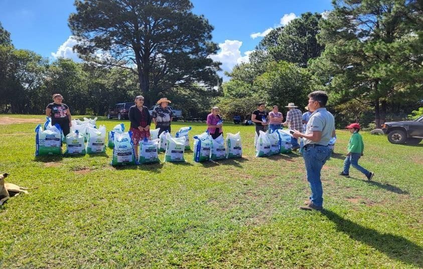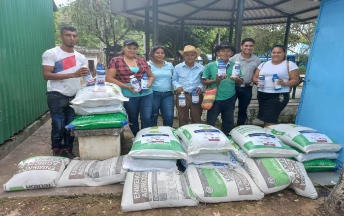 “Ya recibí 3 quintales de abono, 1 bolsa de cal agrícola, 2 litros de foliar, otras cosas y un segundo beneficio son las aves, me han dado 3 pliegos de lámina, 30 yardas de maya, un comidero y un bebedero de agua, un quintal de concentrado para las aves, 9 pollas y un pollito”, explica Castro quien también es parte de las personas que están siendo apoyadas con las capacitaciones agrícolas, ha recibido también los insumos que les permitirá tener mejores cosechas y disminuir los costos destinados para la siembra, lo que apuntalará la economía de su familia compuesta de sus 3 hijos (13, 10 y 9 años) y su esposo.