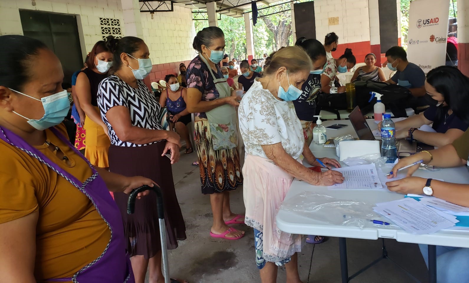 Habitantes del caserío La Pelota se registran para poder recibir su ayuda económica. |