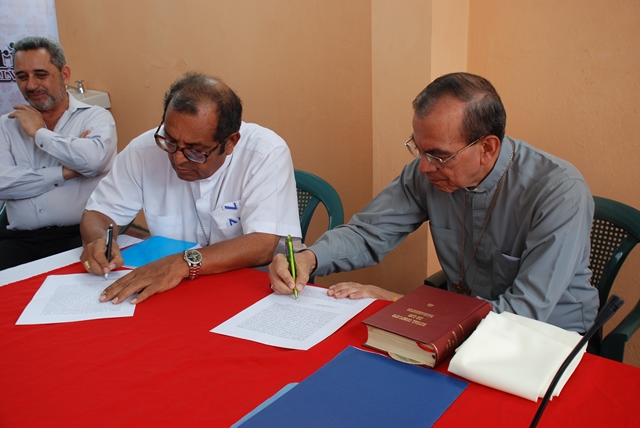 "Aunque la problemática migratoria no es fácil de resolver, tenemos la voluntad de hacer un trabajo humanitario, cristiano, de ver en el migrante al mismo Jesucristo", manifestó el Presidente de Cáritas de El Salvador, Mons. Gregorio Rosa Chávez, momentos antes de proceder al acto de la firma del documento de comodato, entre la Diócesis de Zacatecoluca y Cáritas El Salvador. La Casa de Acogida "La Misericordia" será administrada en corresponsabilidad por Cáritas Oficina Nacional y Cáritas en la Diócesis de Zacatecoluca.